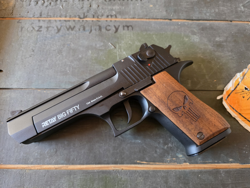 - Schreckschusswaffe Retay Big Fifty 9mm P.A.K. mit montierten Holzgriffschalen