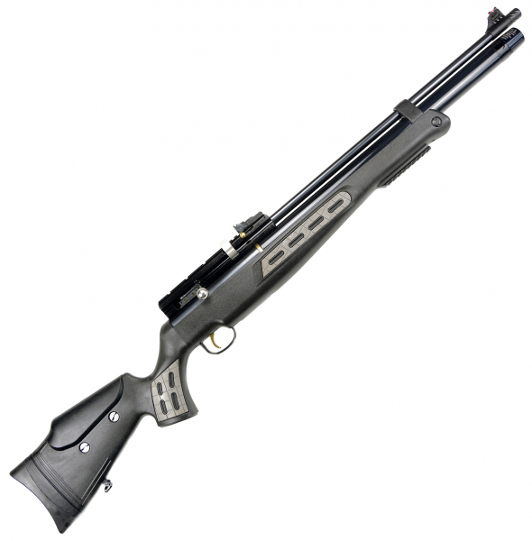 Ein erlaubnisfreies Luftgewehr im Kaliber 9,00 mm. Es ist hochwertig verarbeitet und überzeugt durch seine leichte Handhabung. Dieses Luftgewehr verfügt über einen schönen Polymerschaft mit gummierter Schaftkappe und höhenverstellbarer Schaftbacke. Es besitzt eine Fiberglasvisierung, einen gezogenen 9,00 mm Lauf und eine Weaver- und 11mm Prismenschiene auf der verschiedene Zieloptiken montiert werden können. An der Unterseite des Schaftes ist eine Weaverschiene angebracht, an der z.B. ein Zweibein montiert werden kann. Der Abzug ist titannitriert. Es ist ein Mehrlader mit 7 Schuß Magazinkapazität. An der Laufmündung ist ein M14x1 Außengewinde angebracht um Schalldämpfer oder Mündungsbremsen zu montieren. Angetrieben wird die Waffe über die in der Pressluftkartusche gespeicherte Luft. Fülldruck maximal 200 Bar. An der Vorderseite der Kartusche befindet sich ein Quick-fill Anschluss. Weitere Informationen über diese Waffe erhalten Sie auch auf der Internetseite des Herstellers Hatsan.