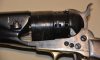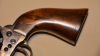 Sie bieten auf einen Vorderlader-Revolver New Army Mod. 1860 im Kaliber .44 mit Stahlrahmen, Premium-Hersteller Uberti, gültiger Schwarzpulver-Beschuss. Lauflänge 8 Zoll. Rollgravur mit Segelschiffen auf der Trommel und Text „Engaged 16 May 1843“.