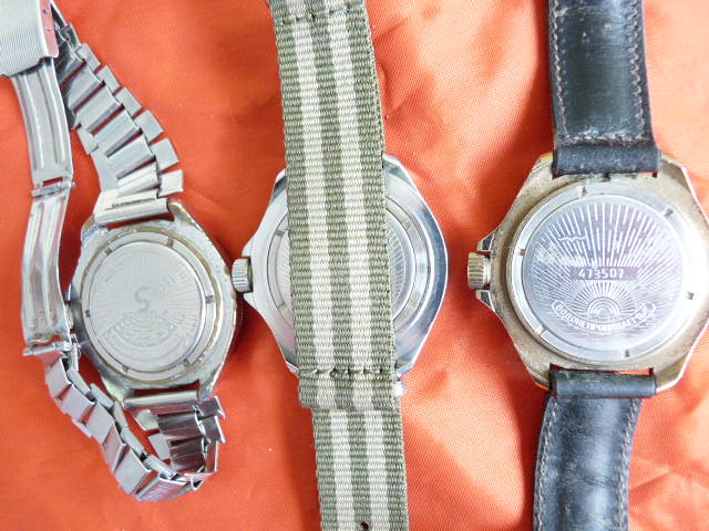 3 Stuck Militärische Uhren KOMANDIRSKIJE. Die Uhr läuft gut. Handanzug. Wasserdicht.