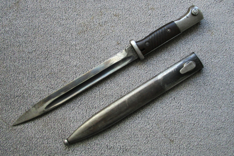Bieter hier dieses originale Seitengewehr der Wehrmacht für den Karabiner 98k an, Herstellercode: cve ( Firma Weyersberg, Kirschbaum & Co in Solingen 1941 / 1942), schönes nummerngleiches Stück, laut einschlägiger Fachliteratur wurde das Bajonett/die Klinge im Dezember 1941 gefertigt, die passende Scheide dazu jedoch erst im Januar 1942, daher so absolut zusammengehörig, viele Abnahmestempel, mit normalen Gebrauchsspuren, unberührter Originalzustand, für das Alter würde ich den Zustand als sehr gut bezeichnen, siehe dazu auch die Fotos, Fragen hierzu gerne per email, allen Bietern viel Erfolg, Versand nur innerhalb Deutschlands oder Auslandsversand nach vorheriger Anfrage möglich, vielen Dank !