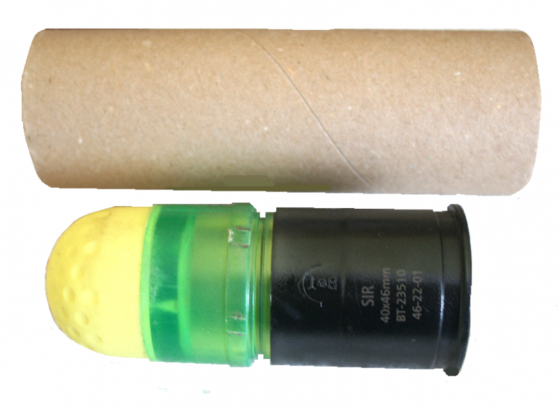 40 mm Patrone mit gelben Wuchtgeschoß aus Weichgummi