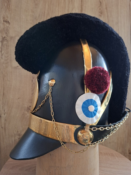 Neu gefertigte Reproduktion eines Bayerischen Raupenhelms 1812 in Reenactmentqualität - Linieninfanterieregiment - im Schwarzwald hergestellt vom Schuhnagel - handgezogene Ochsenlederkalotte - handvernäht - handgefertigte , massive Messingteile - Helmeinsatz feines Leder und Leinen - Raupe wetterfeste Kunstwolle - Größenverstellbar - Fragen ?