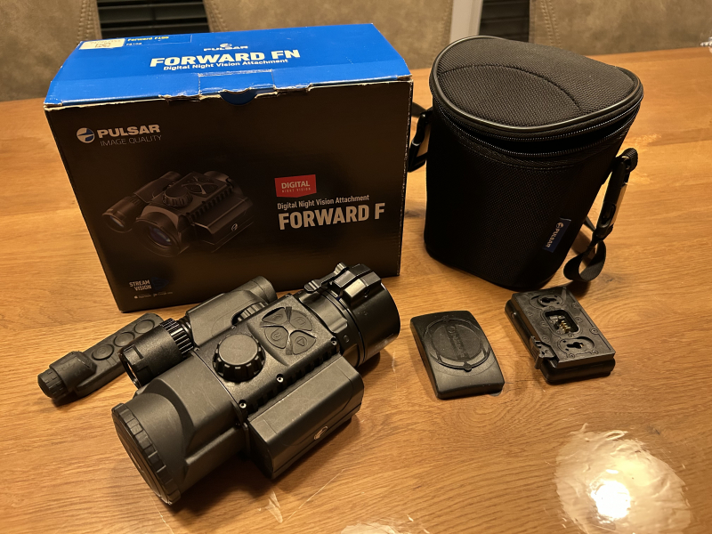 Verkaufe mein Pulsar Forward FN 155 Nachtsicht-Vorsatzgerät in gebrauchtem, aber gutem Zustand. Das Set ist komplett und enthält: • Nachtsicht-Vorsatzgerät Forward FN • Originale Transporttasche mit Tragegurt • Fernbedienung für einfache Bedienung (Batterie müsste erneuert werden) • Originalverpackung mit Anleitung Rusan-Klemmadapter ARF135F155-62 inklusive. Kein Einschießen erforderlich, wird einfach auf ein 56er-Glas montiert. Treffpunktlage bleibt gleich. Das Gerät funktioniert einwandfrei und bietet eine hervorragende Nachtsichtleistung. Verkauf nur wegen Systemwechsel. Perfekt für Jäger, Naturbeobachter oder alle, die auch bei Dunkelheit klare Sicht haben möchten. Per App können Bilder und Videos aufs Handy übertragen werden. Ein Menü-Druckknopf ist eingedrückt (s. Bild), funktioniert aber noch. Bei der Fernbedienung müsste die Batterie ausgetauscht werden, habe ich aber nie benutzt. Ansonsten funktioniert es einwandfrei. Privatverkauf, daher keine Rücknahme oder Garantie!