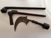 ein Mangbetu, eine Zeremonienaxt und ein Streitkolben. Alter unbekannt. Die Teile entstammen der Erbschaft meiner Eltern. Diese sind viel gereist und haben viel gesammelt. Es ist nicht mein Geschmack und zu schade für die Mülltonne. Deshalb hier für den geneigten Freund oder Sammler.