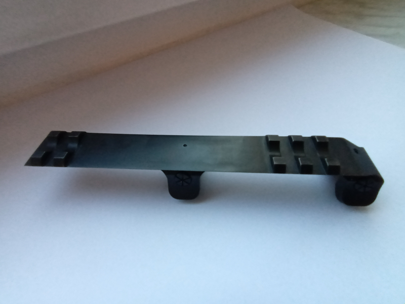 Am hinteren Ende der Picatinny-Schiene wurden 2 Stege mit einer Breite von 14,7 mm belassen sowie am vorderen Ende 3 Stege mit einer Breite von 25 mm. Zwischen den Stegteilen liegt ein stegfreier Teil mit einer Länge von 85,3 mm. Die Länge der Picatinny-Schiene mit den beiden Stegteilen und dem stegfreien Teil beträgt 124,8 mm. Auf dieser Länge kann ein Oberteil montiert werden (z.B. kann auf dieser Länge ein digitales NSG Nightspotter Wolf 10 x montiert werden, siehe Bild).