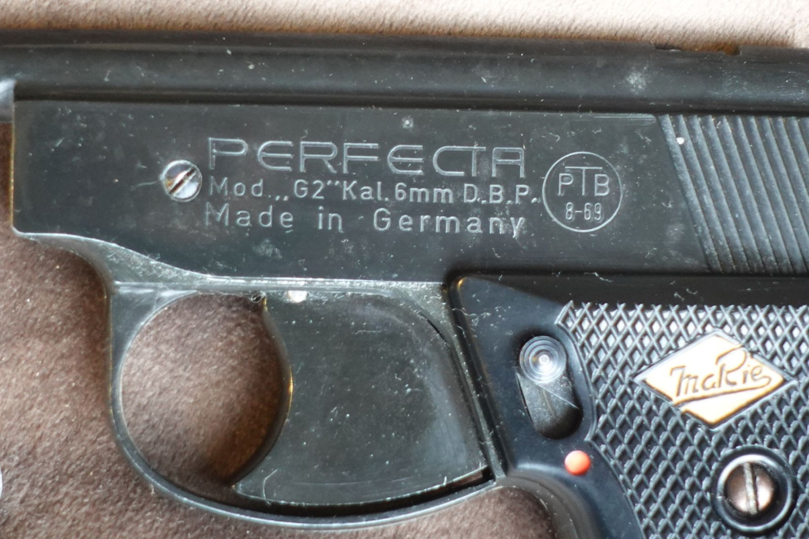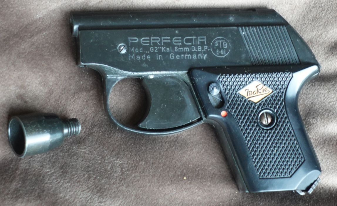 Biete eine Pistole Perfecta G2 im Kal. 6mm Flobert. Mit zugehörigem Abschussbecher. Guter Zustand und voll funktionsfähig. Alle Pyroartikel zünden anstandslos und erreichen auch die volle Steighöhe. Eher seltenes Modell. Zahlung per paypal wird bevorzugt. Kein Verkaufins Ausland.