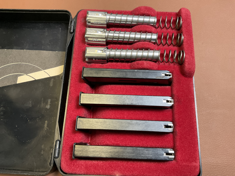 Das Set umfasst mehrere originale Austauschäufe sowie passende Magazine und ist besonders interessant für Sammler und Liebhaber dieses vielseitigen Systems.