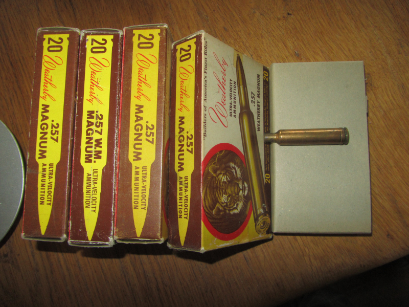 100 einmal verschossene Hülsen im Kaliber .257 Weatherby Magnum. Hersteller der Hülsen war Norma, auch wenn Weatherby auf den Hülsen vermerkt ist.