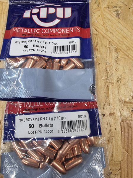 .30/110grs VM .30 Carbine B-010 Geschosse PPU 500 stk. # SSZ Berka