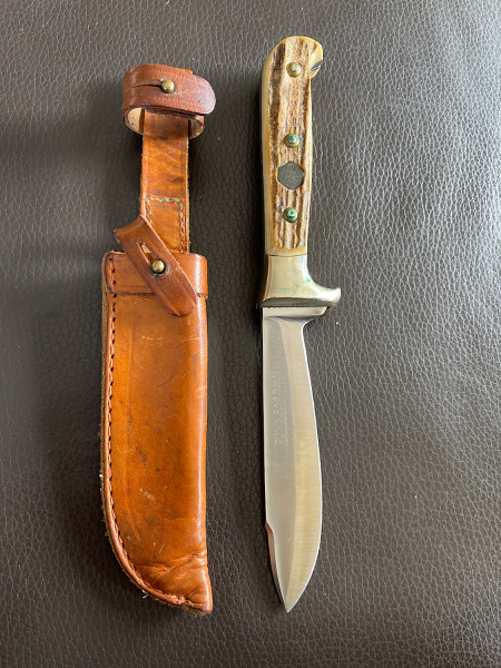 Das Messer wurde gebraucht und hat Gebrauchsspuren zum Beispiel Kratzer auf der Klinge und wurde nachgeschliffen. siehe Foto.Die Beschriftung ist fast verwischt, dennoch ein traumhaftes Gebrauchsmesser für den anspruchsvollen Waidmann!