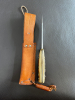 Mit sehr schönen Hirschhorn-Griffschalen und Lederscheide.