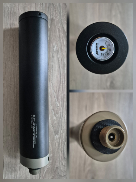 Ersatzkartusche mit Regulator für die AEA Megalodon (NP 130.-), wurde als Upgrade mit einem JADS Tankmanometer (NP 90.-) ausgestattet.