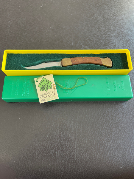 Vor allen Dingen ist die originale grün-gelbe Box und die Garantiekarte dabei, die auch für andere Puma- Messer verwendet werden kann!