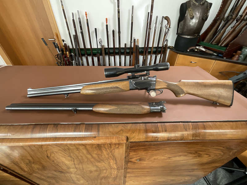 Zum Verkauf steht eine Bruno Bockbüchsflinte im Kaliber 7x57R / 12/70.