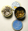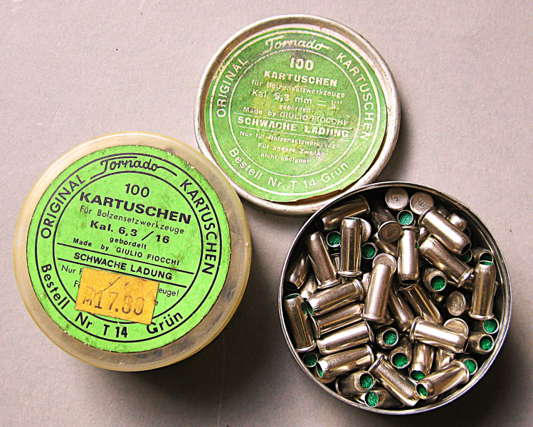 Aus einer Sammlugsauflösung werden einige Original Torpedo Kartuschen im Cal. 6,3x16 angeboten: 1 Dose 100 Stck.grün =schwache Ladung in einer Aludose, 1 Dose 100 Stck. grün= schwache Ladung in Kunsstoffdose, 1 Dose 100 Stck. gelb= mittlere Ladung (Aludose), 1 Dose 100 Stck. gelb= mittlere Ladung (Kunststoffdose), 1 Dose 69 Stck. blau= starke Ladung( Kunststoffdose), 1 Dose 53 Stck blau gefaltet=starke Ladung (Kunststoffdose) diese Kartuschen wurden bei der Firma IMI in England produziert, 1 Dose 100 Stck. schwarz gefaltet=stärkste Ladung(Kunststoffdose) diese Kartuschen wurden ebenfalls in England bei der Firma Kynoch gefertigt, 1 Dose 100 Stck. schwarz= stärkste Ladung(Kunsstoffdose). Alle nicht besonders aufgeführten Kartuschen wurden bei Fiocchi in Italien hergestellt. Sie sind nur für Bolzenschubgeräte vorgesehen. Die Kartuschen sind alle in guten Zustand, die Dosen haben äußerlich alters-und lagerbedingt ein wenig gelitten. Die Bilder sind Bestandteil der Auktion. Dieses ist ein Privatverkauf, daher keine Garantie oder Rücknahme. Bitte beachten sie auch meine anderen Angebote.