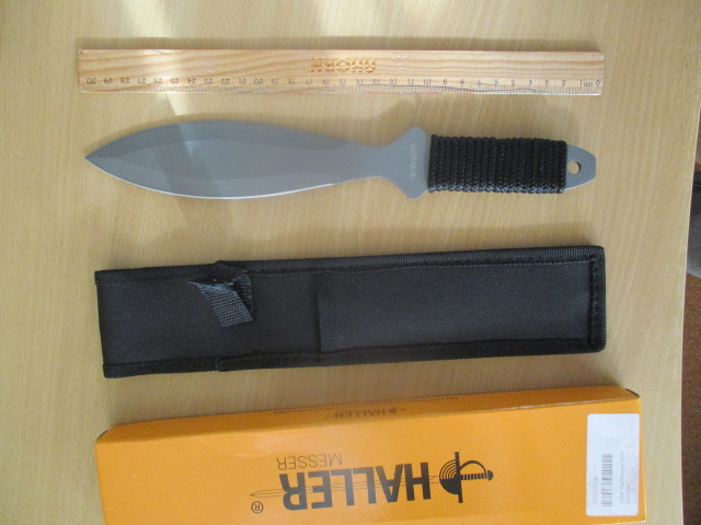Verkaufe ein neues in OVP Wurfmesser von Haller. Titan beschichtet 420 Stainless Stahl Gesamt ca. 30cm. Mit Hülle. Hab es nur fürs Foto kurz ausgepackt. Privatauktion ohne Rücknahme oder Garantie usw.