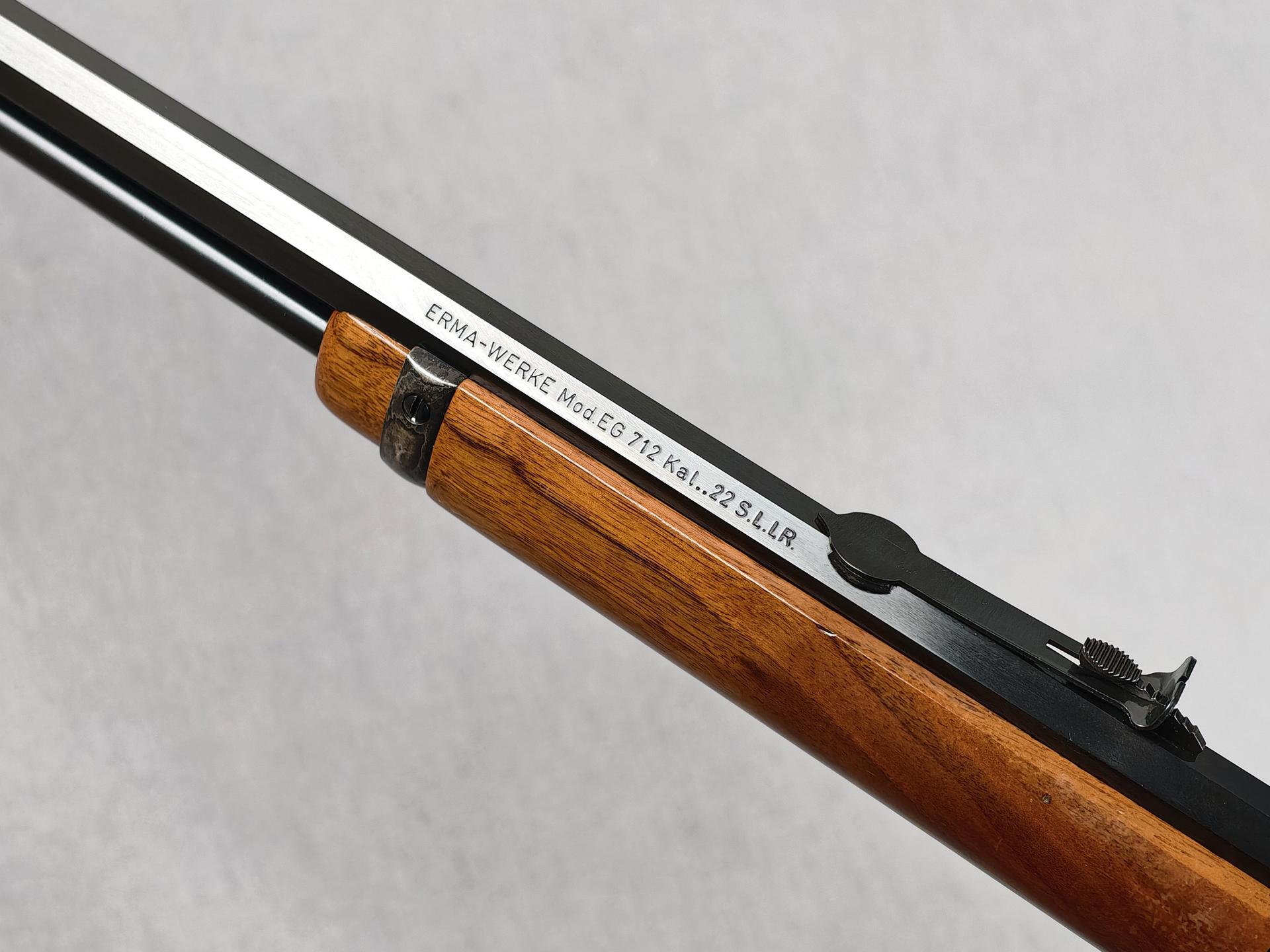 Die ERMA Mod. EG 712 ist eine klassische KK-Unterhebelrepetierbüchse für das Westernschießen. Sie weiß mit guter Fertigungsqualität, führigen Abmessungen und leichtgängiger Mechanik zu überzeugen, sodass jahrelangem Schießspaß nichts im Wege steht.
