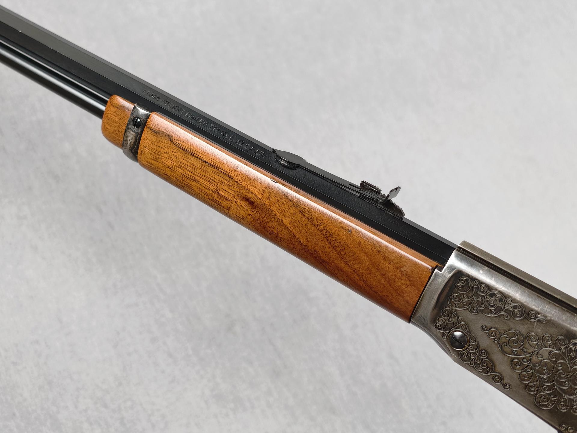 Wer nach einer hochwertigen Freizeit-Waffe mit kostengünstiger Munition sucht, macht mit einem ERMA-Unterhebelrepetierer alles richtig. Die besonderen optischen Details dieses Exemplares werden sicherlich auch den anspruchsvollen Westernschützen überzeugen. Angesichts des guten Erhaltungszustandes vielleicht auch für Sammler interessant? Wir freuen uns, Ihnen diese Waffe ab 1.00€ anbieten zu können und wünschen viel Erfolg bei der Auktion!