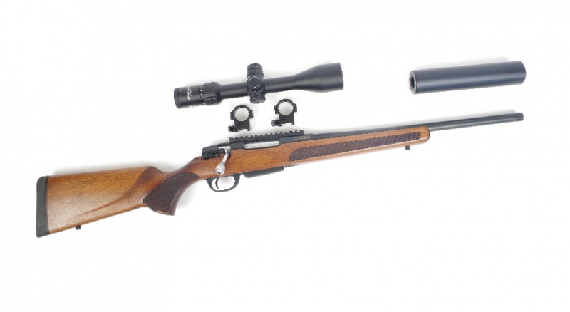 Waffe und Optik sind natürlich fertig montiert und bereit zum einschiessen.