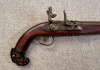 Die Steinschloß Pistole hat eine Gesamtlänge von 53cm Lauflänge 35cm Cal.50 - Glatter Lauf Der Äußere Zustand ist sehr schön. Die Feder vom Abzug ist defekt. Der Lauf wurde halbvoll zugegossen. Auf dem Lauf steht der Büchsenmacher drauf siehe Foto. Peter - Joachim Krieter Magdeburg Otto-Baer-Str.3 des Weiteren steht auch die Jahreszahl 1751 auf der rechten Seite Kein Beschuss Stempel vorhanden.