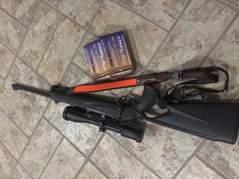 Blaser R8 , sehr guter Zustand , Lochschaft, Lauf normale Länge, mit Zeiss Glas „Diavari M 3-12mal 56 T, mit Absehen und Leuchtpunkt, Sattelmontage, dazu noch 1 1/2 neue 308 Win. CDP original Blaser Munition