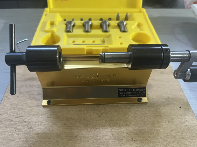 Wegen Aufgabe des Wiederladens aus Altersgründen verkaufe ich dieses Hülsenbearbeitungs tool von Forster. Das Werkzeug lässt sich auch mit einer kleinen Bohrmaschine antreiben oder von Hand mit einer Kurbel (siehe Foto). Alle Spannzangen sind mit dabei, um die verschiedenen Hülsen aufzubehmen. Das Werkzeug ist in einem sehr gepflegten Zustand.