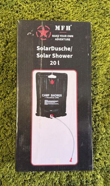 Solar-Reisedusche mit einem Fassungsvermögen von 20 Litern.
