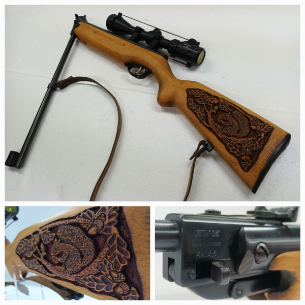 WEIHRAUCH HW35___Luftgewehr Kal.4,5mm___SCHAFT Schnitzerei___EINMALIG___Konvolut SET LG+ZF+Gurt__TOP