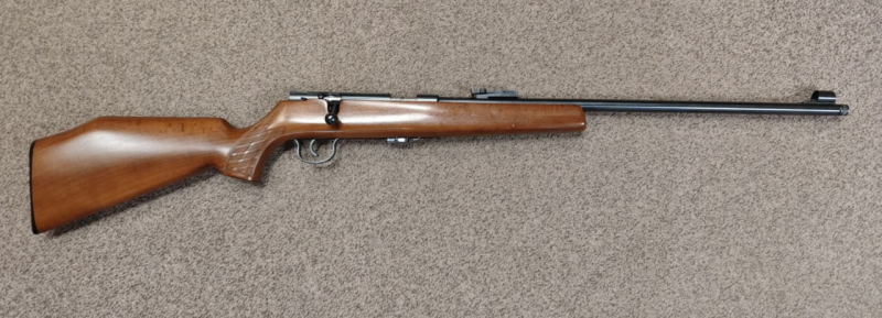 Die Waffe kommt inkl. eines 5 Schuss Magazins und hat eine offene Visierung verbaut.