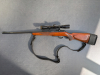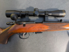 Repetierbüchse Anschütz im Kaliber 22 Magnum, Baujahr 1961, mit Zieloptik RWS 4x32, deutsche Backe, lederner Gewehrriemen, Gummi-Schaftverlängerung und Gummi-Kammergriffkugel.