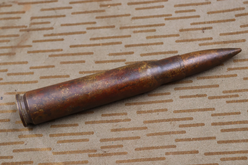 Französische 13,2cm Hotchkiss Deko Patrone von 1934. Das Heck des Geschosses ist angeschnitten, somit Demilitarisiert! Sieht man nicht, wenn es in der Hülse steckt! Guter Zustand!