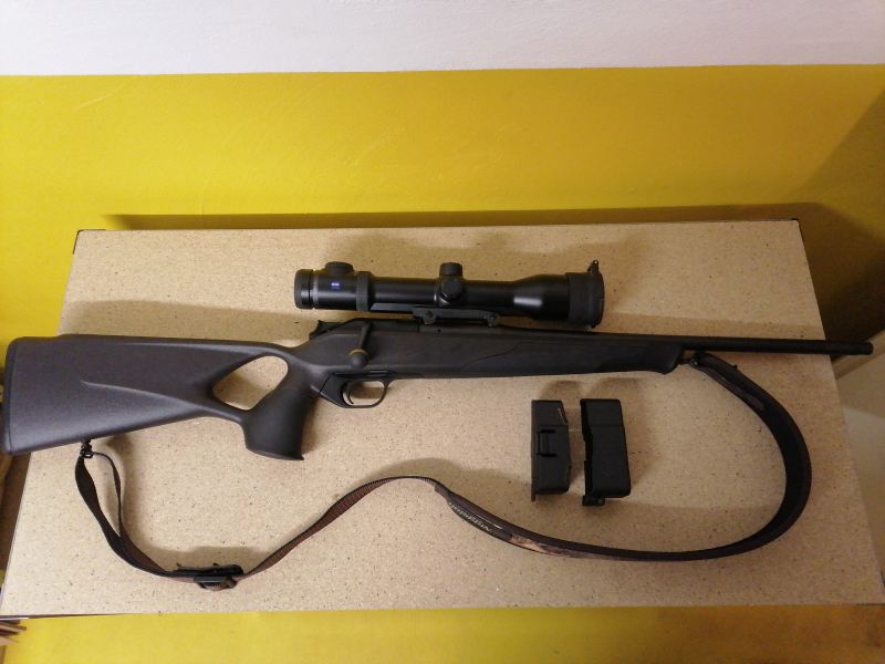 Biete meine Blaser R8 Professional Success im Kaliber 308.Win. Schaft braun-schwarz. Lauflänge 52cm mit M15x1 Mündungsgewinde. Montiert ist ein Zeiss Victory V8 1,8-14x50 auf einer Blaser Sattelmontage und Objektivschutzdeckel. Kammergriffkugel von Waffen Jakele mit Goldring. Schutzkappe für Mündungsgewinde nicht vorhanden. Niggeloh Gewehrriemen in Tarnfleck Optik. Bei Sofortkauf gibt es ein Gewehrfutteral und 77 Schuss Federal Soft Point (Power Shok) in 150 grain gratis dazu. Waffe wird nur an Selbstabholer verkauft. Wenn Versand gewünscht wird muss sich der Käufer selber darum kümmern.