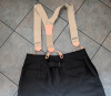 verkaufe: eine seltene Old Style Hose von WAH MAKER in Größe XL (Maße: einfache Bundbreite ca. 48 cm, Gesamtlänge ca. 113 cm und Schrittlänge am Innenbein ca. 76 cm), ist mit US Größe 40 angegeben - schwarzes Wollmischgewebe, hinten ein Riegel zum verstellen der Weite, Hosenträgerknöpfe, seitliche Einschubtaschen - die Hose wurde vor einigen Jahren aus den USA importiert (wurde meines Wissens nach nie in Deutschland angeboten), NP 95 Dollar - mit dabei sind dazu passende Hosenträger - die Hose ist so gut wie neuwertig und wurde nur einmal zu einem Fotoshooting getragen (Siehe Fotos!), die Hose und die Hosenträger sind in einem top Zustand mit minimalsten Spuren vom längeren Hängen im Schrank
