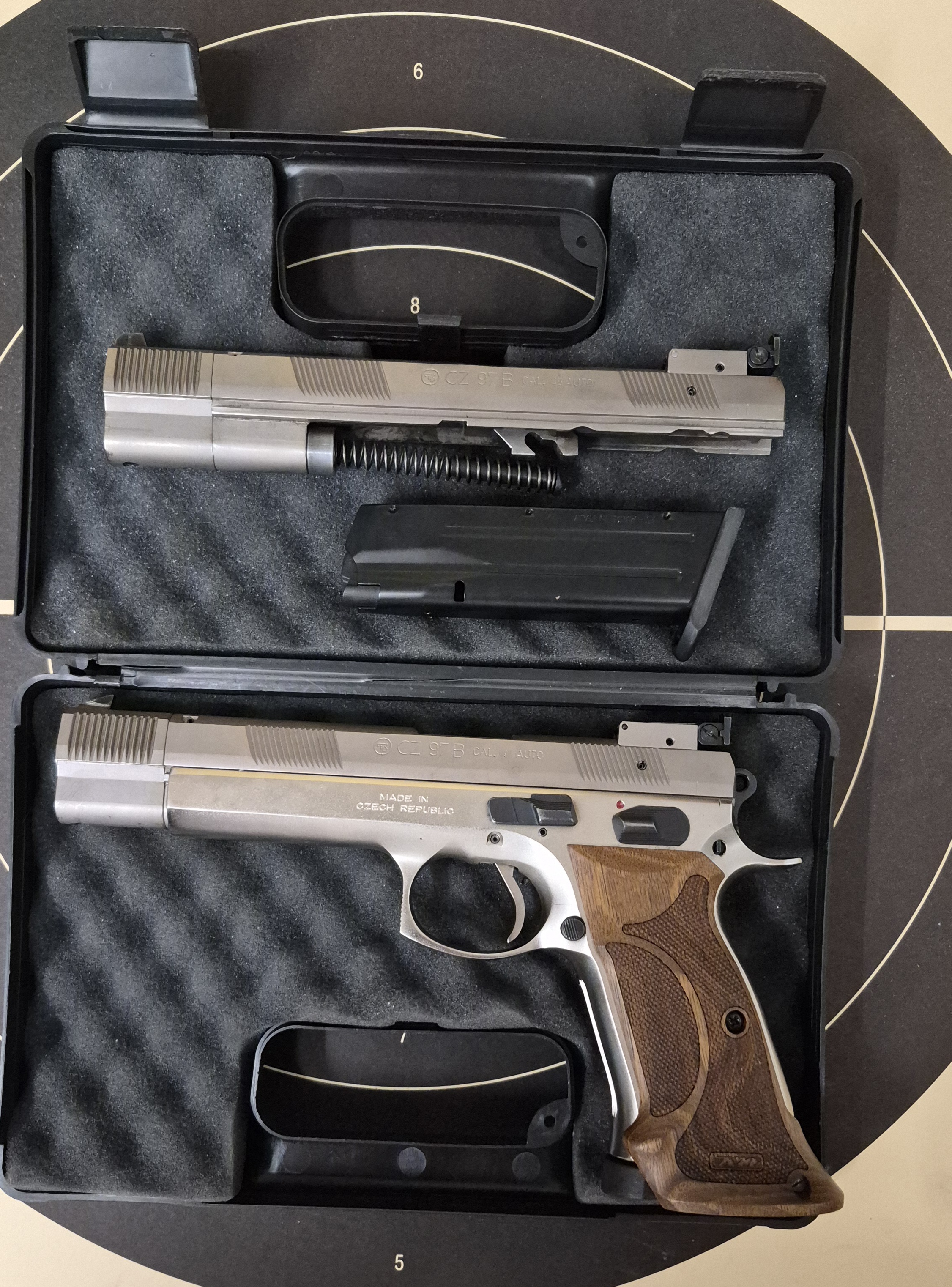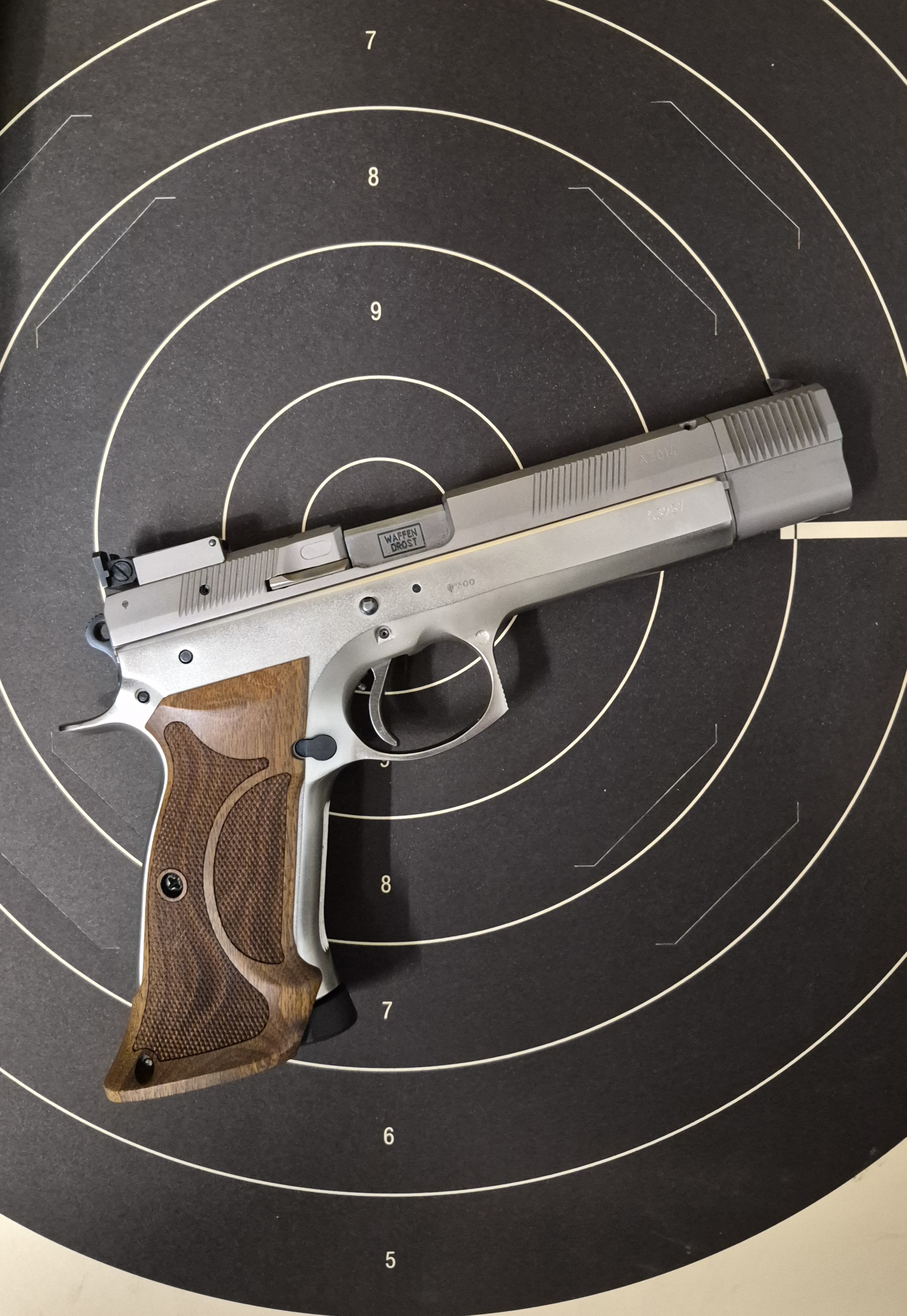 CZ 97 Sport 6Zoll,cal. 45 mit WS 9mm 6 Zoll. Verchromt mit Nill Matchgriffschalen.