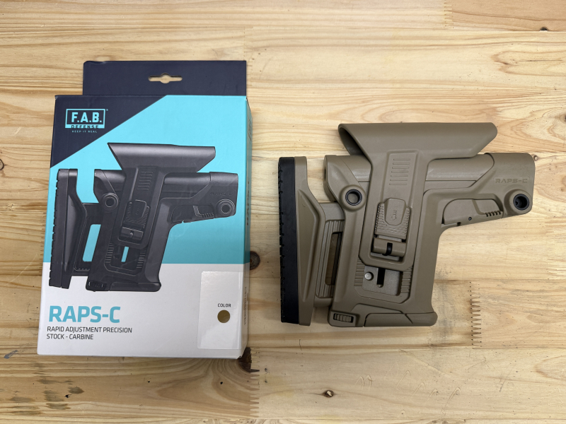 Zum Verkauf steht ein FAB DEFENSE RAPS-C Präzisionsschaft für AR-15 Modelle in der Farbe Sand in einem sehr gepflegten Zustand.