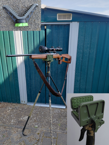 Durch diese Kombination kann die Waffe eingespannt werden und muss nicht mehr gehalten werden / fällt nicht um.
