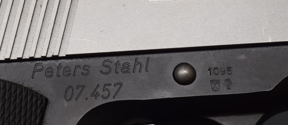 Handballensicherung, 8-Schuß Magazin, Pachmayr Gummigriffschalen mit Logo. Lauf sehr gut, Brünierung 98 %