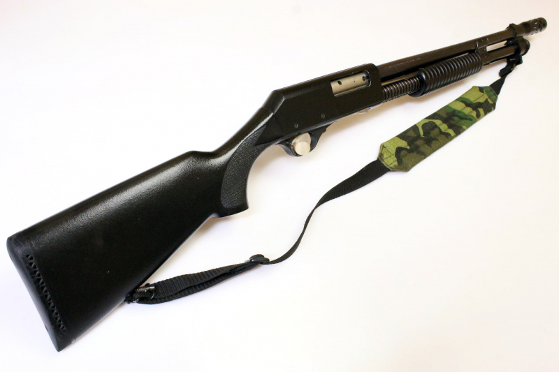 - schwarz lackierter Holzschaft mit gummierter Schaftkappe, Trageriemen