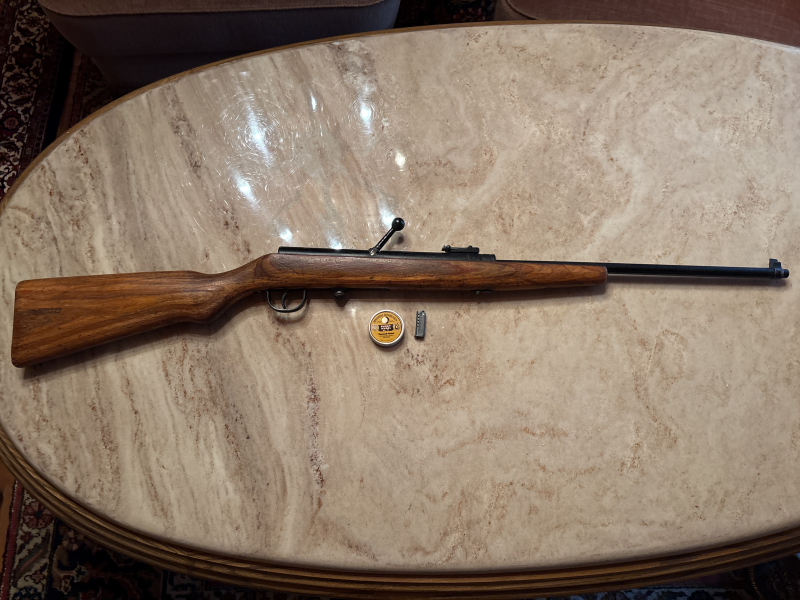 Es befindet sich in einem dem alter entsprechenden Zustand, Mechanik funktioniert einwandfrei. Kolben baut Druck auf, dieser ist bei dem Gewehr normal, auf 10 Meter hat man keine Probleme