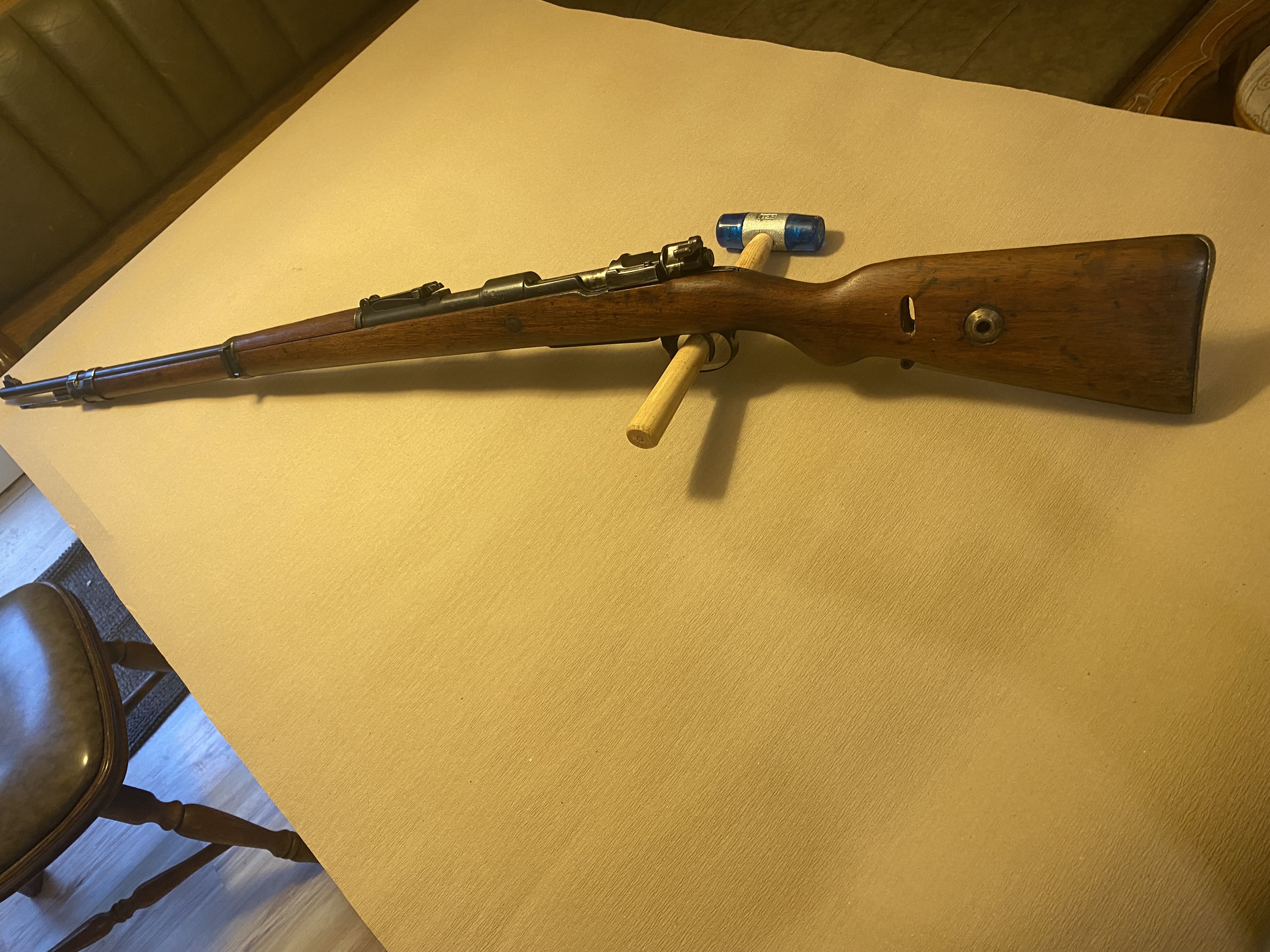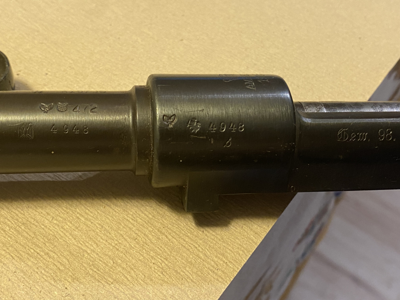 Verkaufe seltenen Karabiner 98B (Bei der Reichswehr adaptiertes Gewehr 98 sieht aus wie ein 98K hat jedoch einen 74cm Lauf) Leider nicht Nummerngleich. Viesierung durch Heftpunkt auf max.300m blockiert,lege unblockiertes Viesierblatt ohne Nr dazu.