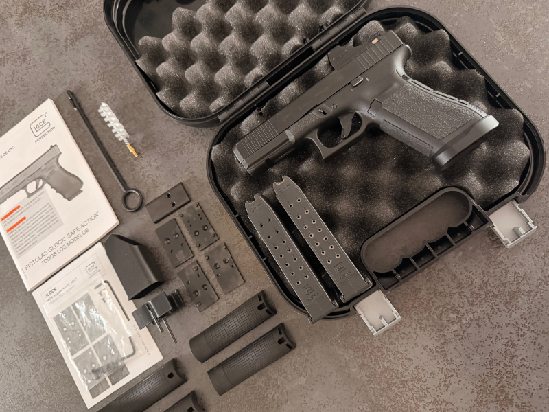 Hier bieten Sie für eine Glock 17 Gen 5 MOS in sehr gutem Zustand. Die Waffe hat eine Schussbelastung von ca. 500 Schuss und ist technisch und optisch in sehr gutem Zustand (lediglich etwas oberflächlicher Abrieb der Brünierung vom Holster). Um den Grip der Waffe zu verbessern, wurde zusätzlich ein 3M Tape angebracht, was nach Bedarf auch wieder entfernt werden kann. Außerdem wurde ebenfalls ein Magwell von Taran Tactical TTI im Wert von 150 Euro montiert, was zum einen den Grip verbessert und zum anderen das schnelle Nachladen vereinfacht. Die Waffe wird inkl. Koffer, 2 Magazinen, IMI Defense Holster für Linkshänder, Backstraps und MOS Abdeckplatte sowie Adapter geliefert. Das auf den Bildern montierte Holosun SCS-MOS-GR Reflexvisier gehört nicht zur Auktion, kann aber nach Absprache für 300 Euro separat erworben werden. Es ermöglich durch die flache Bauweise ein perfektes Co-Witness). Die Waffe stammt aus Erstbesitz. Ich verkaufe die Waffe für meine Frau, da sie den Schießsport nicht weiter ausführt und sich von Ihren Waffen trennen möchte. Für weitere Fragen stehe ich gerne zur Verfügung. Der Versand erfolgt versichert mit dem Kurierdienst Overnight.