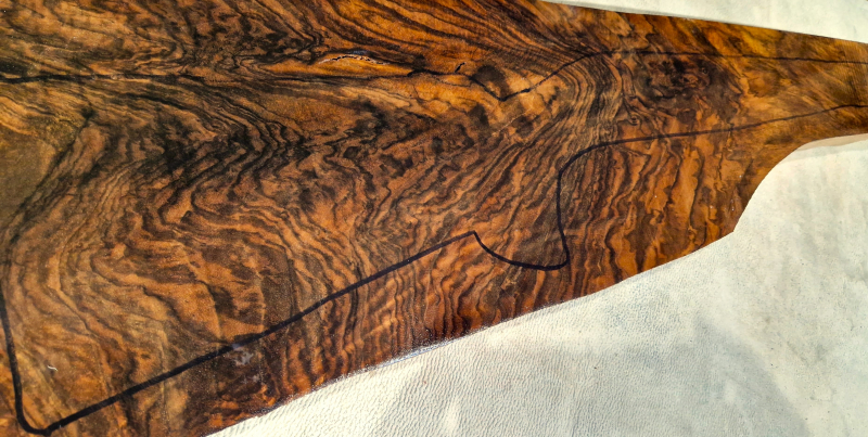 Die ersten Aufnahmen entstanden auf einem leicht angefeuchteten Holzbrett, um die Farben und die Schönheit des fertigen Produkts realistischer darzustellen. Das letzte Bild zeigt die Maße in Zentimetern. Die Stücke wurden fünf Jahre lang luftgetrocknet. Auf Dampftrocknung wurde verzichtet, um die Farben und die natürlichen Harze des Holzes zu erhalten. Das Ergebnis ist ein elastischeres, festeres und schöneres Holz.
