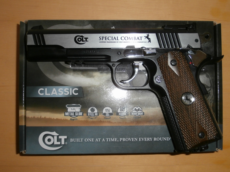 Biete hier wie auf den Bildern zu sehen eine CO2 Pistole COLT Spezial Combat an. Metal Slide Quality, Steel BB 4,5mm, 12g CO2 powered, 19 Round Capacity, Rear Sight adjustable, Double/Single Action. Aus dem Bestand meines Vaters neu bzw. neuwertig sieht unbenutzt aus ohne Gebrauchsspuren. Alles wie auf den Bildern zu sehen. Versand per Vorkasse, Käufer trägt Versandkosten und Selbstabholung nach Vereinbarung auch möglich. Viel Spaß beim bieten. Achtung! Privatauktion! Keine Garantie! Oder Rücknahme ohne triftigen Grund! Altersnachweis nur bei Nicht ID-Mitgliedern erforderlich!