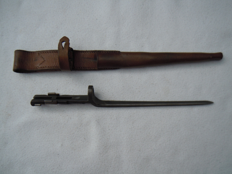 Bajonett für das seltene Johnson 1941 Gewehr. Das Johnson wurde während des 2.WK von den U.S. Marines und nach dem Krieg von Indonesien (ehem. holländisch Ostindien) verwendet. Sehr guter Zustand. Auf Waffe und Scheide sind keine Markierungen oder Herstellerangaben zu erkennen. Versand in EU für 20,-€