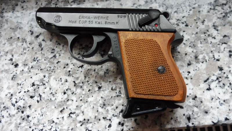 ERMA EGP55 PTB 399 PPK Nachbau Signal-Gas Pistole mit Holzgriffschalen kal. 8mm****anschauen **