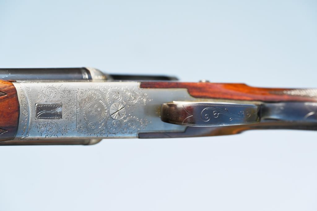 Verschluss: Doppelter Laufhaken, Greener-Verschluss, Querriegel.