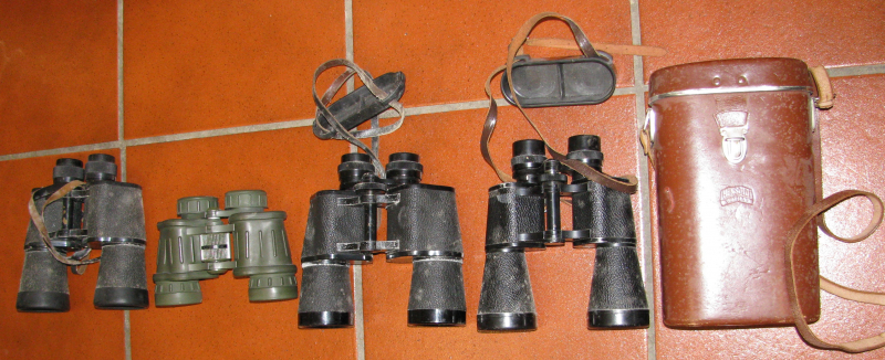 Zum Verkauf kommt ein Posten von 4 Ferngläsern und einem Köcher