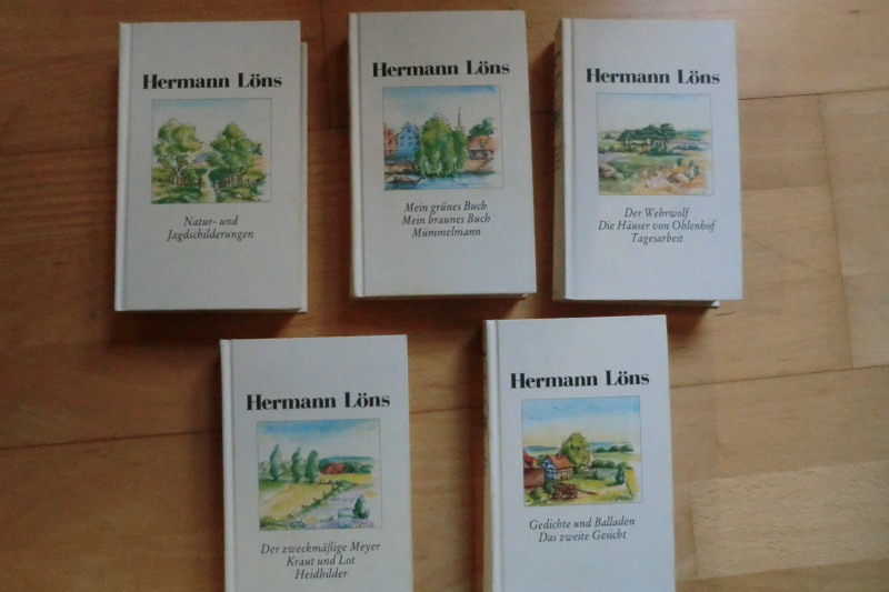 HERMANN LÖNS ausgewählte Werke in 5 Bänden - herausgegeben von Hans A. Neunzig, Weltbild Verlag Augsburg 1993 - 1. Natur- und Jagdschilderungen: 420 Seiten / 2. Mein grünes Buch - Mein braunes Buch - Mümmelmann: 400 Seiten / 3. Der Wehrwolf - Die Häuser von Ohlenhof - Tagesarbeit: 416 Seiten / 4. Der zweckmäßige Meyer - Kraut und Lot - Heidbilder: 390 Seiten / 5. Gedichte und Balladen - Das zweite Gesicht: 376 Seiten / uam - Eine schöne Buchsammlung und ein TOLLES GESCHENK - Guter bis sehr guter Zustand