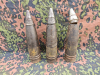 Satz aus drei originalen 8,8 cm Sprenggranaten (Sprgr.), verwendet in der berühmten 8,8 cm Flak 18 sowie in entsprechenden Kriegsmarine-Geschützen.